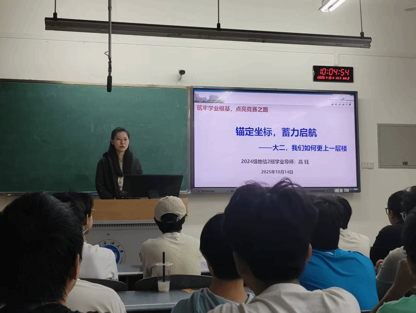 2025年10月14日上午,2024级地理信息科学2班“锚定坐标,蓄力启航——大二,我们如何更上一层楼”学业规划指导班会在教室如期举行。本次班会邀请王成武、高钰、王晨晨三位老师到场,围绕学科竞赛、学业进阶、成长心态等核心维度展开分享,为处于大二关键阶段的学子们厘清规划思路、注入成长动力,班级全体学生到场参与。