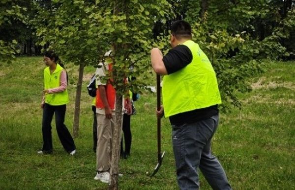 图 2:志愿者松土与除草现场