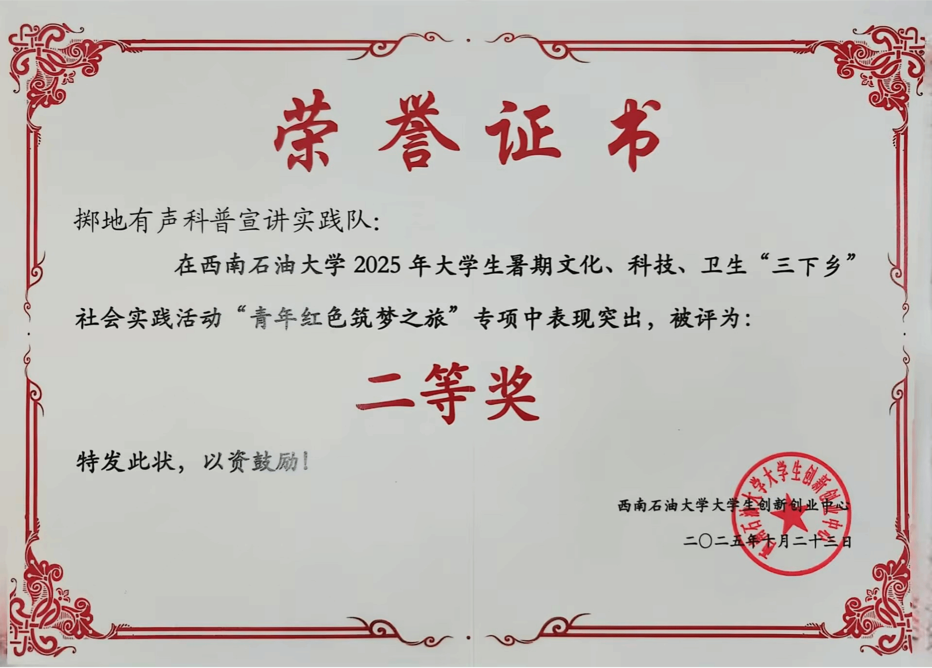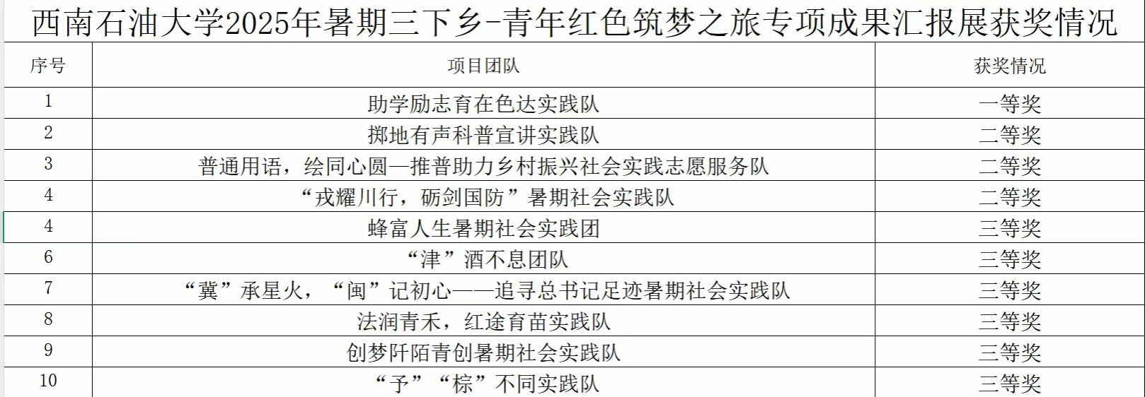 图1.西南石油大学2025年三下乡-青年红色筑梦之旅专项获奖名单