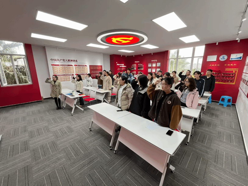 两项核心议程完成后,大会进入全体党员宣誓环节。全体参会党员面向鲜红的党旗,举起右拳庄严宣誓,重温入党誓词,铮铮誓言回荡在会场,不仅让新转正党员与新发展预备党员进一步强化了身份意识与使命担当,也让其他党员同志再次回溯入党初心,凝聚了支部整体向心力。
