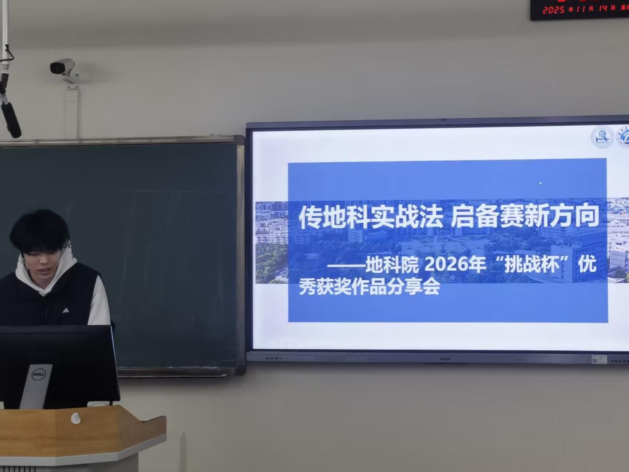 为激发学子创新创业热情,营造浓厚学术科研氛围,11月14日19:00,地科院2026年“挑战杯”优秀获奖作品分享会于明辨楼C204顺利举行。本次大会聚焦竞赛经验分享与优质项目解析,为有志参赛的同学搭建起学习交流的平台,助力大家明晰参赛方向、掌握备赛技巧。