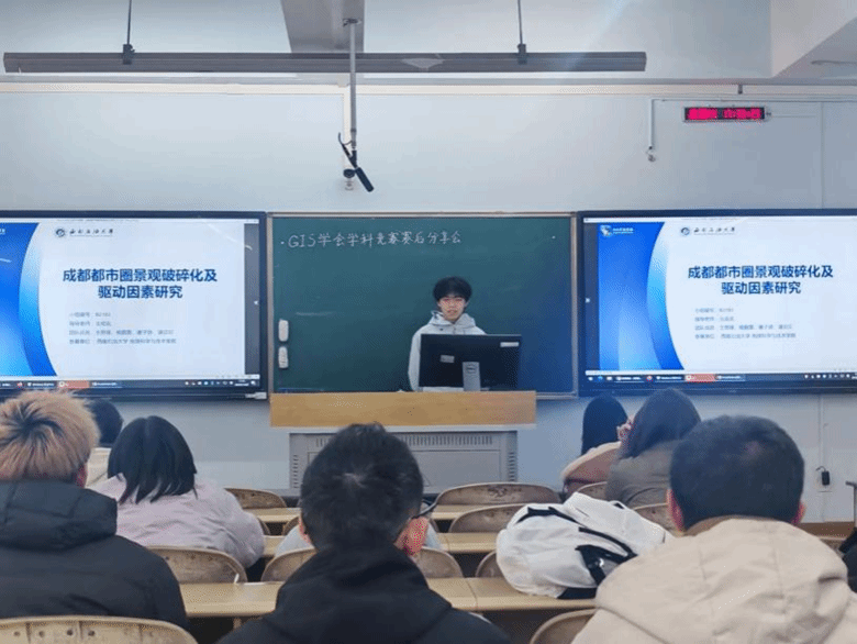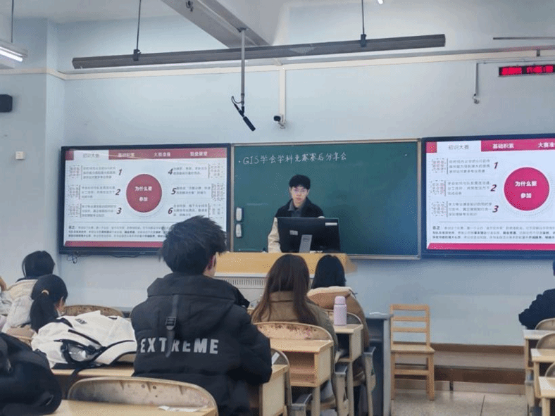 2025“易智瑞杯”赛事成绩揭晓,我院地理信息科学专业团队在本届赛事中斩获佳绩。为助力同学们深化GIS竞赛认知、积累专业实践经验,11月20日下午,GIS学会于思学楼C203开展了“易智瑞杯”赛后分享活动。活动吸引了一众对GIS竞赛与专业实践满怀热忱的同学,现场交流氛围热烈。