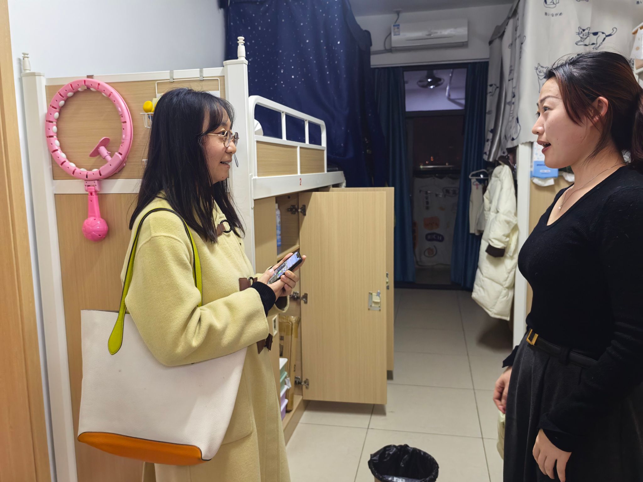 在博士生宿舍,史格老师聚焦科研进展与学术成长,与博士生们深入探讨科研课题中的难点问题,了解大家的实验开展情况与研究思路,为同学们提供专业的指导与建议,鼓励大家勇于探索、攻坚克难,在科研道路上稳步前行。