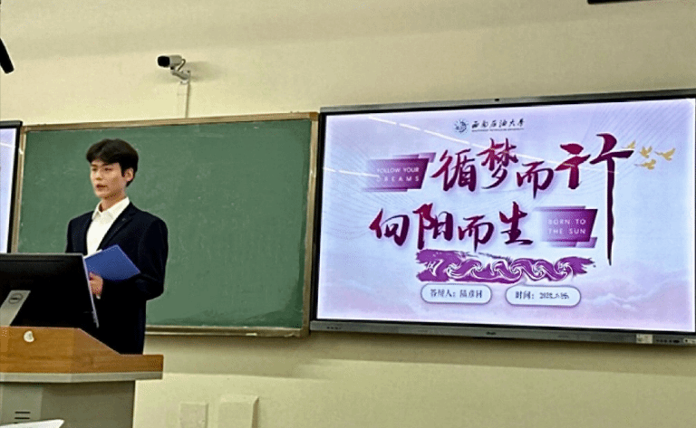 2023级地质学本科生张语涵深情讲述了参与科研项目的过程,从数据采集到模型构建,一次次失败中坚持探索,最终取得突破性成果,展现了科研工作者的执着与担当。2023级城市地下空间工程专业本科生陆彦同分享了作为国家奖学金获得者是如何平衡多门专业核心课程的方法。他提到,地理科学专业的学习需要“理论+实践”双轮驱动,鼓励同学们“把简单的事情做到极致,把复杂的问题拆解突破”。