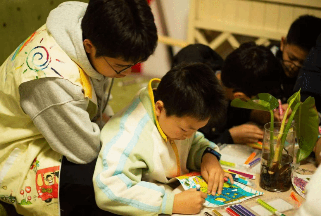 活动当天,社区青少年在志愿者的带领下,以合作绘画开启艺术探索之旅。孩子们用画笔勾勒内心世界,在色彩的碰撞中表达情感,逐步打破初见的拘谨。随后,大家围坐一起,齐声合唱《彩虹的微笑》。轻快的旋律与真挚的歌声交织,现场洋溢着温暖与欢笑。