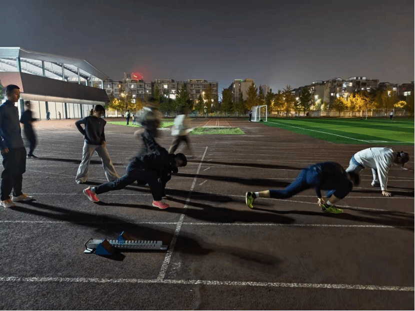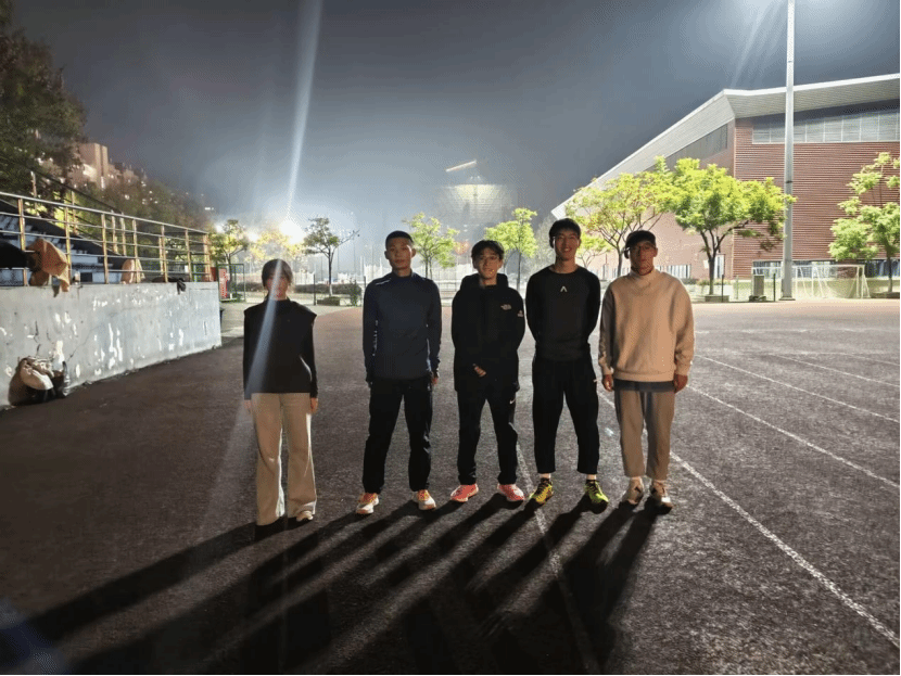 晚10:10,随着训练结束,队员们互相拍肩鼓励,身影渐渐消失在夜色中。操场跑道上,5串脚印清晰可见,仿佛刻下的誓言——明年校运会的赛场上,他们必将以更昂扬的姿态,为地科院争光。