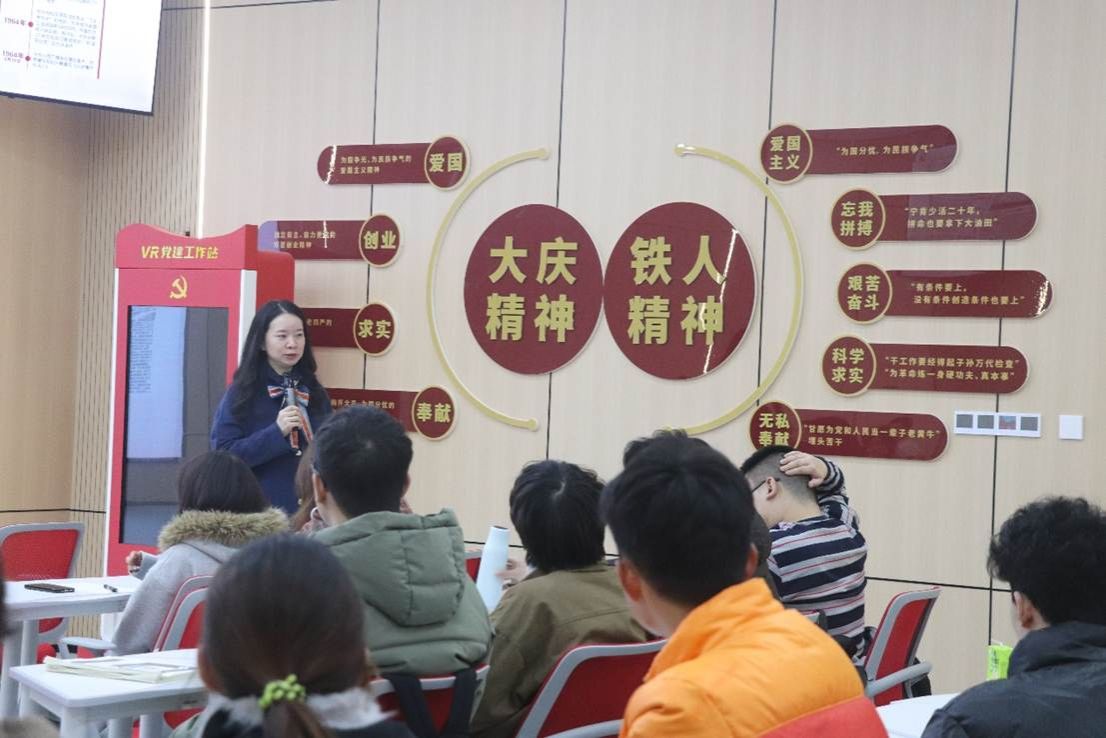 培训伊始,张风老师以大庆精神为切入点,深入阐释了理想信念在青年成长成才过程中的重要意义。她指出,大庆精神作为中国共产党人精神谱系的重要组成部分,集中体现了"爱国、创业、求实、奉献"的核心价值,是新时代青年坚定理想信念的宝贵精神财富。