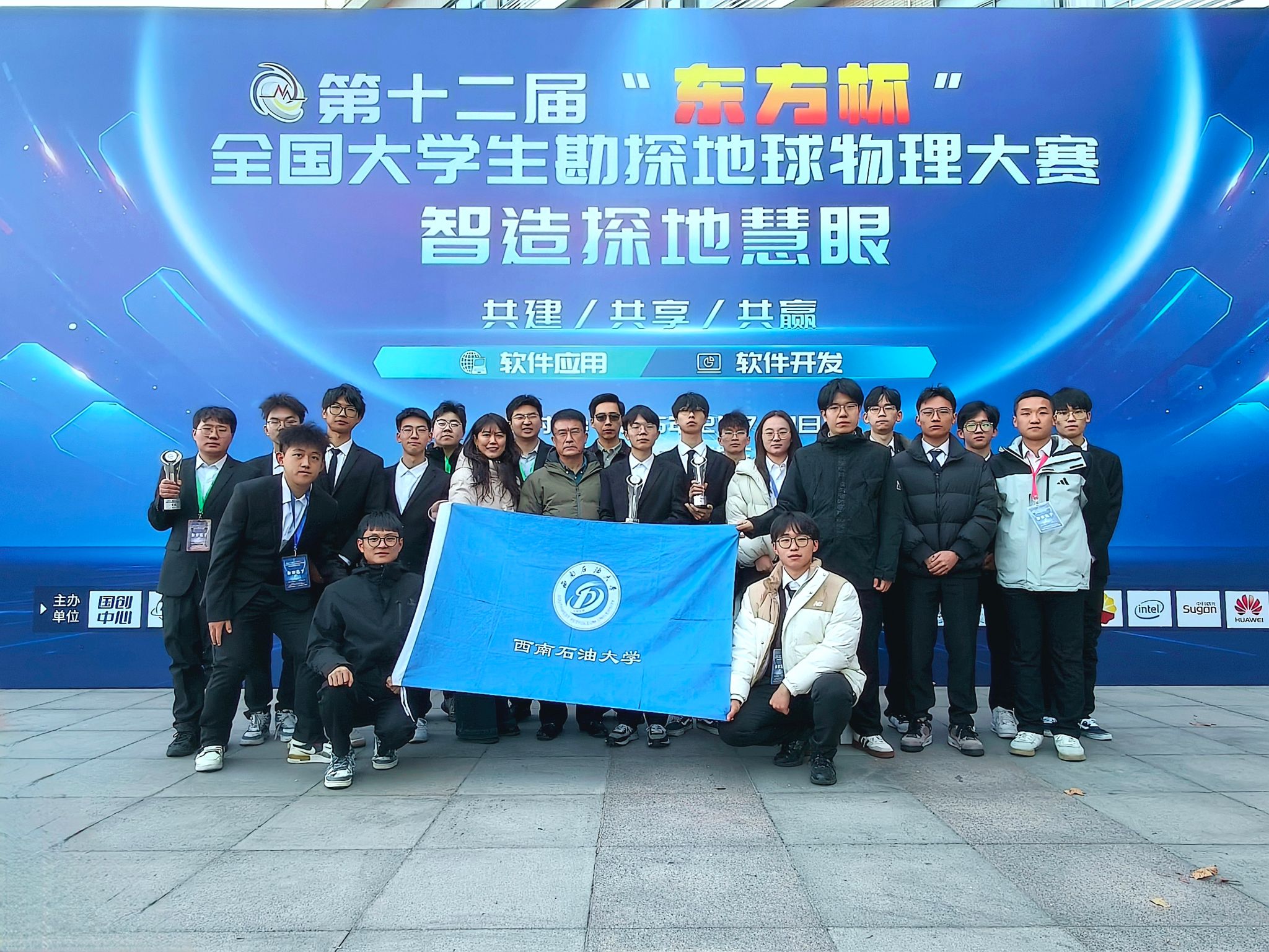 12月7日至11日,第十二届“东方杯”全国大学生勘探地球物理大赛决赛在青岛中国石油大学(华东)举办。在各位教师的精心指导下,共有3支本科生队伍、7支研究生队伍入围决赛,最终斩获软件应用赛道解释方向一等奖1项,二等奖3项;软件应用赛道处理方向一等奖2项,二等奖3项;软件开发赛道一等奖1项。我校获“优秀组织奖”,学院史云燕、赵虎、岳玉波获“优秀指导老师”。