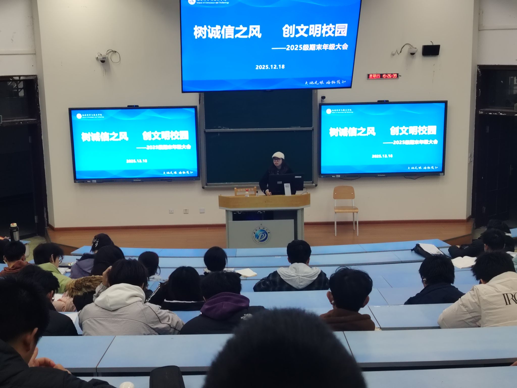 期末将至,为进一步加强校园学风建设,引导学生树立诚信应考理念,增强规则意识与责任担当,12月18日,地科院2025级辅导员刘杨洁雅组织开展“树诚信之风,创文明校园”的主题教育班会。
