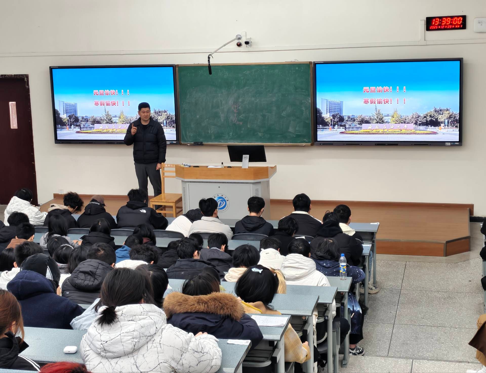 安全问题始终是重中之重,王晨晨老师围绕假期安全展开全面细致的叮嘱与强调。针对寒假期间的出行安全、消防安全、用电安全、财产安全、网络安全及人身安全等方面,王老师逐一梳理风险要点,提醒同学们提高安全防范意识,远离各类安全隐患;出行途中遵守交通规则,做好个人防护,居家期间规范用电用火,谨防诈骗陷阱,理性辨别网络信息,坚守安全底线。同时倡导同学们合理规划假期作息,劳逸结合,度过一个平安、健康、充实的假期。