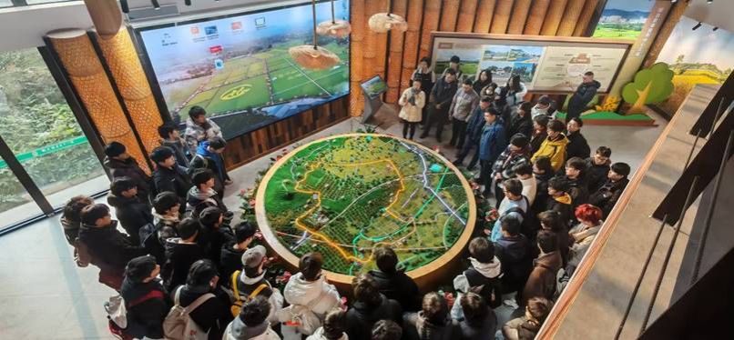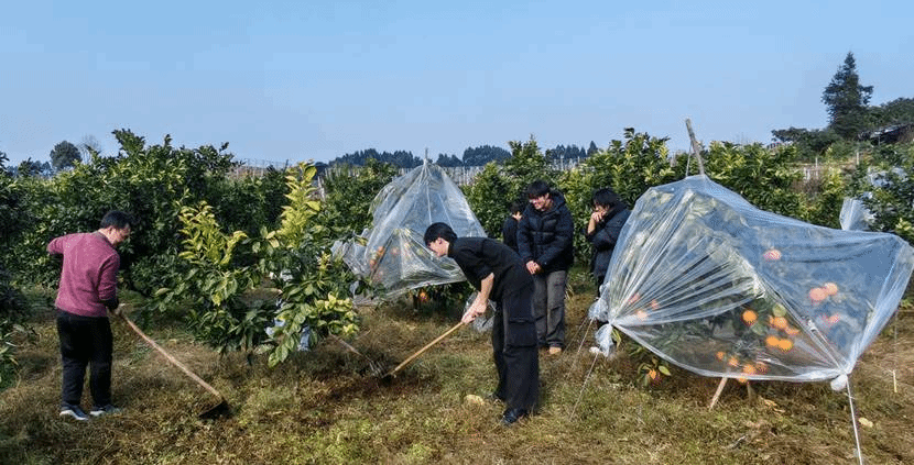 深耕专业实习的同时,实习队以校地合作为纽带,深入桂花桥镇开展乡村振兴实践。通过“看、听、做”三维活动,感受乡村振兴脉动,体会劳动价值,让社会实践充满“民生温度”。现代化的桂花桥农业大公园直观展现了“绿水青山就是金山银山”在基层的实践成果,让同学们深刻体会乡村振兴的历史性变革。后续聆听老师讲解凉水井组地层的橘子甘甜密码,将地质实习与劳动教育巧妙融合,大坪生态果园开展果树施肥更是深刻体会“一分耕耘,一分收获”的哲理。与基层干部、村民的交流中,同学们真切感受乡村振兴带来的产业兴旺、生态宜居新面貌,体会到基层工作者的担当。以此次实习与实践为契机,2026年1月20日,“西南石油大学地球科学与技术学院社会实践基地”在桂花桥镇庙稿村正式挂牌,该基地将作为学院师生开展劳动教育、专业实习、科技服务、社会调研的重要载体,引导大学生扎根基层、深耕乡村、服务地方发展,在实践中锤炼本领、厚植情怀。