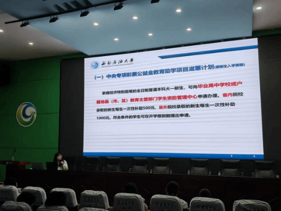 此次宣讲活动,五名同学充分发挥了自身作为资助政策亲历者的优势,从受助学生的视角,向学弟学妹们生动展示了国家“不让一个学生因家庭经济困难而失学”的庄严承诺在大学的真实体现。他们详细解读了从入学前到毕业的全链条资助体系,并结合自身经历,分享了他们在国家资助政策支持下如何安心学习、全面发展的真实故事。从最初对大学生活的忐忑,到通过“绿色通道”顺利入学;从利用国家助学金解决生活所需,到通过勤工助学岗位提升实践能力——他们的成长轨迹生动诠释了西南石油大学“资助育人”工作从“保障型”向“发展型”再到“成才型”的升级之路。