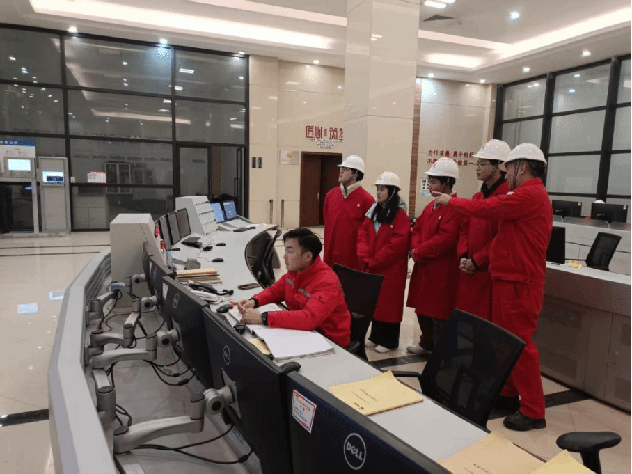 而后,企业相关负责人围绕四川华油中蓝能源有限公司的发展历程及企业规划展开介绍,深入讲述家乡油气资源的富集程度及天然气资源整合运输的发展方向,增强了同学们对家乡油气资源的系统认识。随后师生在徐工及校友张鸣的陪同下,走进企业内部,参观了企业的天然气冷凝输送装置及控制平台,张鸣详细阐述了相关设备设施的工作原理及企业的安全工艺,徐工则在控制平台介绍了相关工作人员的基本工作内容及企业天然气运输的工作流程,近距离感受到科技赋能下的能源输送实践。
