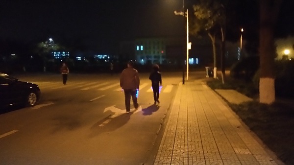 荧光跑的队伍里还吸引了一对中年夫妇,阿姨接过志愿者们递过来的蓝色荧光棒,兴奋的拉着身体明显发福又不愿意跑的叔叔快速往前跑:“哎呀,你稍微快一点嘛,同学们都要看不见了。”