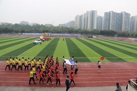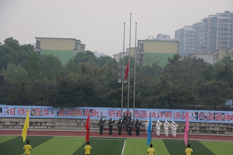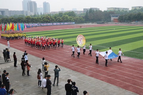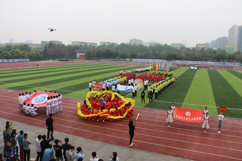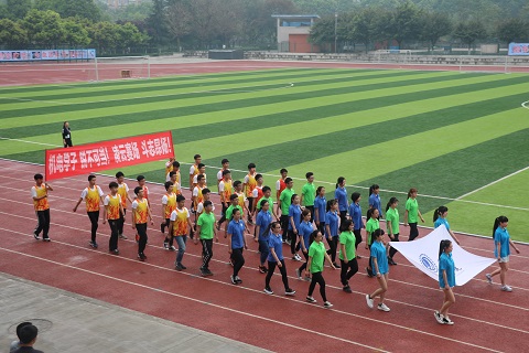 各方队绕场一周,在体育场草坪中央有序集合。“向后转”一声令下,全体学生端庄站立,面向国旗,护卫队的升旗手们喊着嘹亮的口号,踏着正步走向国旗杆。升旗仪式结束后,赵金洲校长向全体学生致开幕词,倡导全校师生,天天健步走,日行一万步,食动两平衡,积极参与运动计时活动,同时表示继续推进学校的体育俱乐部建设,健身发展三五计划,四百公里健康体魄活动,师生共同努力,打造运动健康西南石大。随后,计科院学生代表全体运动员庄严宣誓,裁判员代表庄严宣誓。最后,校党委书记孙一平宣布:“西南石油大学第四十届春季田径运动会正式开幕!”