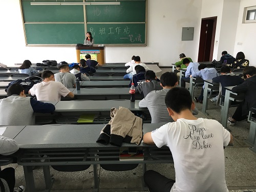 阳光明媚,草长莺飞。在4月14日下午的明辨楼C204,同学们个个都低头沉思,奋笔疾书着。这正是地科院易班工作站笔试考核的现场。