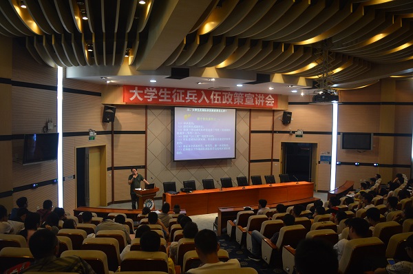 大会以一支热血军旅视频拉开序幕,视频中当代军人的风采以及各种国防武器让在场同学热血沸腾。王老师首先从《宪法》和《兵役法》的相关规定、国防建设需要及个人发展等方面介绍了大学生参军入伍的重大意义,并介绍了参军入伍、复学、考研、就业、公务员招考、部队培养使用、学费及经济补偿等方面的优抚政策。结合学校优秀退伍士官,详细解读了2016年征兵政策。宣讲会上,与会学生踊跃提问,就普遍关注的服役提干、上军校、就业安置、补助金发放等优抚政策问题进行了现场咨询。