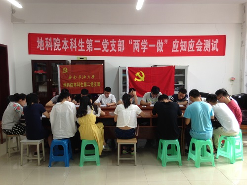 为进一步推进“两学一做”学习教育,5月13日上午,地科院本科生第二党支部召集全体党员在明辨楼B415开展了“两学一做”应知应会测试和重温入党誓词活动,活动由党支部书记于百江老师主持。