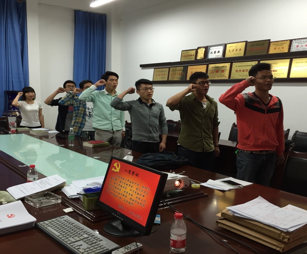会议最后,第五党支部成员一起重温了入党誓词,对党旗庄严宣誓。“我志愿加入中国共产党,拥护党的纲领,遵守党的章程,履行党员义务,执行党的决定,严守党的纪律,保守党的秘密,对党忠诚,积极工作,……”,大家通过重温入党誓词,重述入党心路历程,使全体党员增进了对党的感情,增强了党员的归属感、光荣感、责任感和使命感。