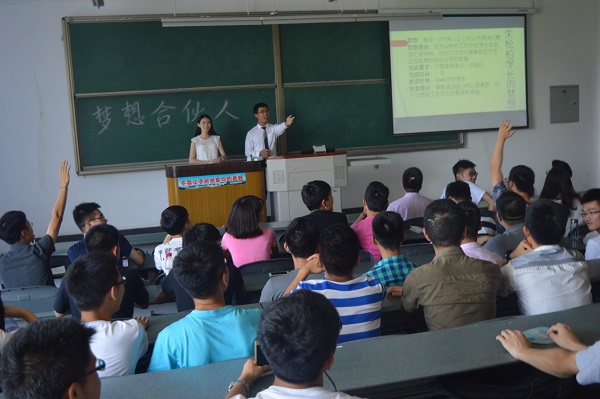 本次活动由学校第四批进德修业项目组“梦想合伙人”策划与举办。通过采访学院优秀的前辈们,了解他们在大学里那些本可能完成却没有完成的遗憾,项目组制作成十个各具代表性的梦想。他们通过虚拟梦想币的方式拍卖给对此梦想心怡的学生,签署“梦想交接书”,由梦想监督小组和所拍卖梦想的前辈们双重监督,认真完成此梦想。