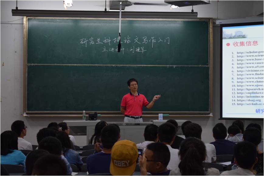 2016年9月13日晚,地科院邀请刘建军老师为2016级新生进行研究生科技论文写作入门培训,培训在博学楼A501教室举行,王静萍老师一同参与了本次培训活动。