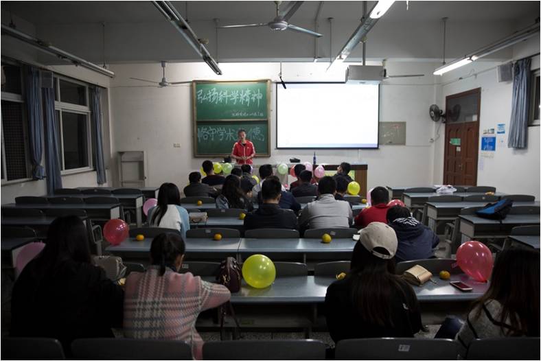 10月28日,地科院硕士2015级1班在博学楼多媒体教室A208举办了以“弘扬科学精神,恪守学术道德”为主题的班会,班会由班长曹琰主持,全班在校的研究生参加了会议。