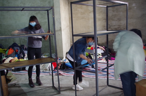 在大家的共同努力下,爱心书籍很快整理完毕。之后,志愿者们开始整理暖冬衣物以及各种书包、杯子、文具等学习生活用品。衣服种类很多,薄的厚的,男女老少,一应俱全。