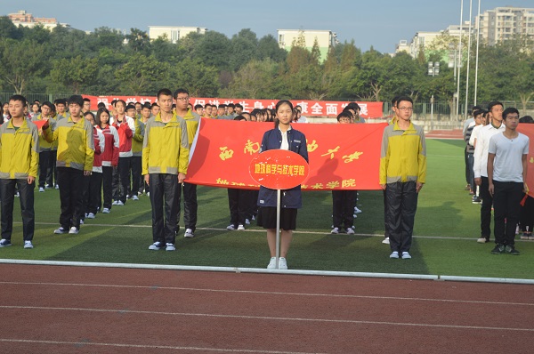 10月29日,2016级新生田径运动会在一期足球场举行。校党委副书记张文卫、校党委宣传部部长王义全、教务处处长黄健全、校团委书记夏艳出席开幕式。开幕式由体育学院党总支书记彭小华主持。