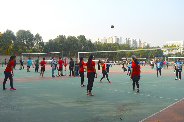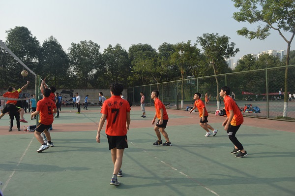 比赛在裁判的一声号令中开始,男排队员们都迅速进入状态,各个队员分工明确,阻挡、反击两不误。在同体育院的精兵强将的较量中,我院队员发挥良好,敏捷地跳跃拦网,使得比分不分上下。与此同时,我院广大师生也到现场为健儿们加油打气,在赛场上跳跃着的中国红成为了一道靓丽的风景。我院男排如此强劲,女排也毫不逊色。同样也是与体育学院过招的女排队员们打起了十二分的精神,不放过每次进攻的机会。