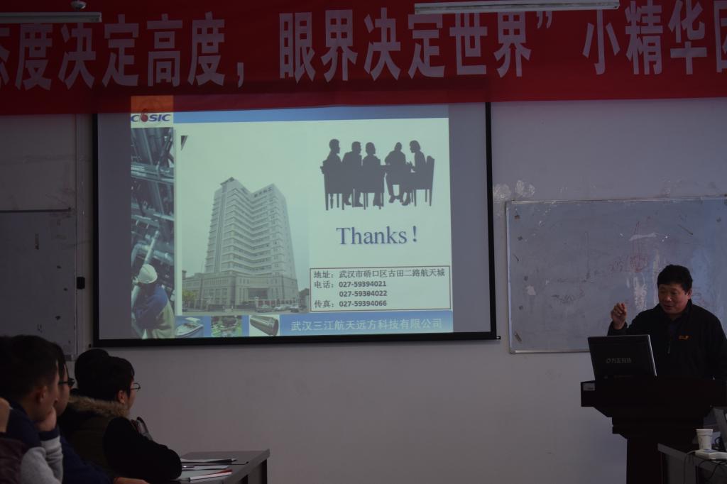 宣讲会上,远方公司董事长李京喜对三江集团作了简要介绍,并展示了远方公司从事的研究领域与部分研究成果。据介绍,武汉三江航天远方科技有限公司系中国航天三江集团公司的全资子公司,成立于1993年,注册资金20000万元,是湖北省高新技术企业。远方公司主要从事LNG清洁能源技术产品研制(以天然气为主的气体处理装置、LNG加注装置等)、油气测试设备研制、石油化工工程承包、信息技术服务,产品涉及航天、航空、清洁能源、石油、化工、IT等领域,具备一定的竞争优势。