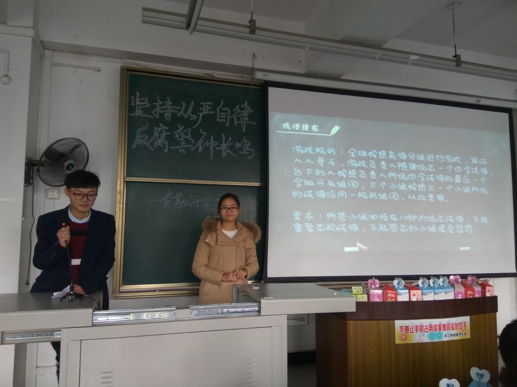 地空团支部的开场小品《特殊任务》紧扣主题,揭露了现在“请客送礼”的现状,同时也赞扬了那些坚守本心的清官;资勘团支部通过提问的方式进行了反腐知识的普及,同学们积极抢答,踊跃发言。同学们通过这种方式,加深了对廉政的认识。提问过后,四位同学又带来了三句半表演;地质、地信两个团支部一起组织了本次团组织生活,两个专业的同学们配合默契,带来了吉他弹唱,舞蹈等形式的表演,全场掌声不断。在整场活动过程中,各团支部还精心准备了小游戏,例如资勘研究型班的成语接龙、你画我猜等。