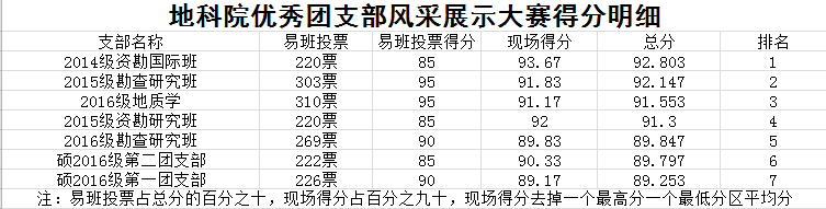 “聚似一团火,化作满天星”,2014级资勘国际班团支部以别具一格的广播电台播报方式进行答辩,他们开创了团支部的三大特色,以及甲烷管理模式。“易有班,地有质”,2016级地质团支部虽然是由新生组成,但他们团结一心,努力建设班级团支部,在学习、生活中互帮互助,各项评比均在年级前茅。易班建设成果显著,四级通过率高,地质专业也成为年级其他专业学习的榜样。“剑锋所指,所向披靡”,2015级勘查研究型团支部以独特的风采闪耀其中。作为学生,他们勤勉互助,认真践行良好学风,追求卓越,力求更好。