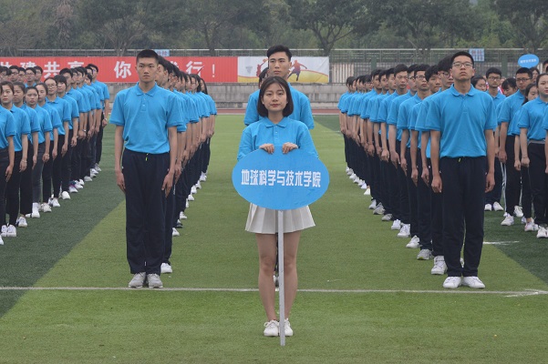 “我心飞扬,超越梦想,奋发图强”,地科院方阵激情洋溢地展现了地科人的风采与自信。