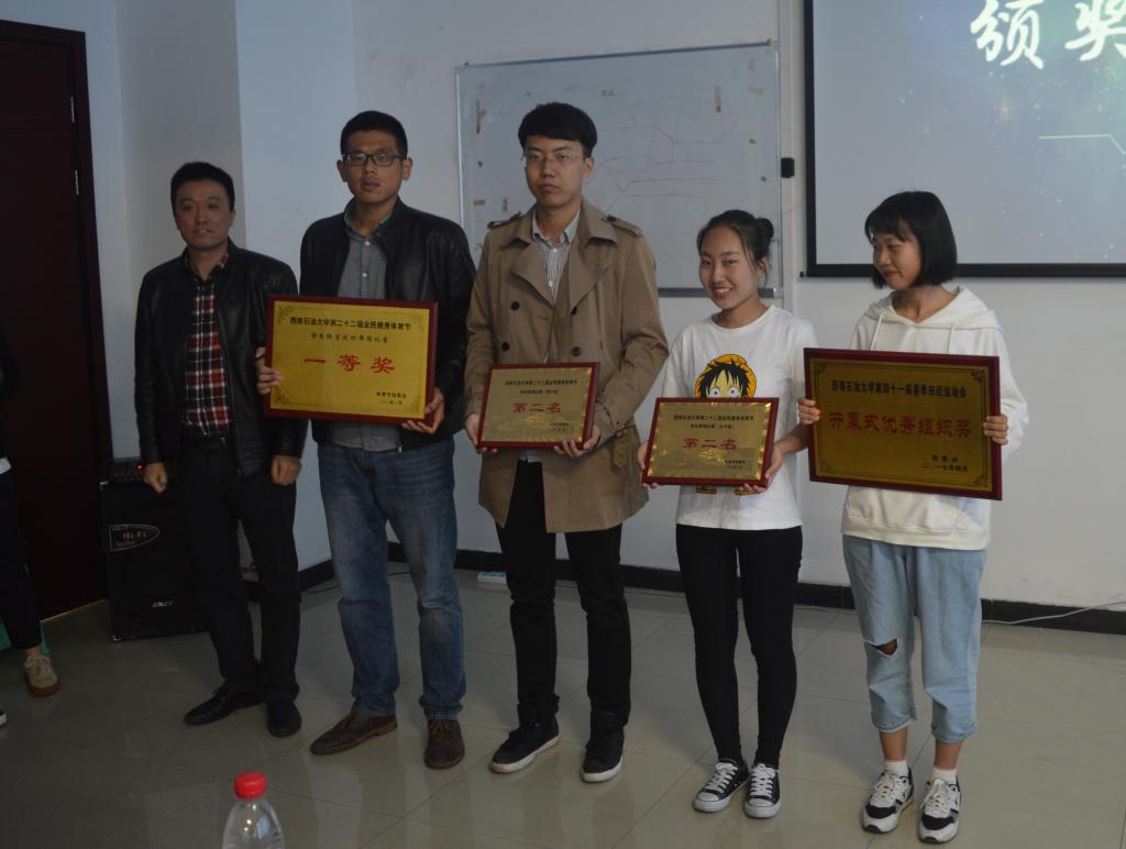 首先,由地科院党委副书记范起东,团委书记于百江,2016级辅导员欧阳田为学生运动员代表颁奖,并和他们进行交流,告诫学生运动员们在以后的比赛训练中要戒骄戒躁,再接再厉,并注意安全问题。