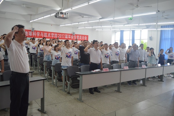 6月8日,地科院于明辨楼C203举行毕业生党员教育大会。地科院党委书记朱江,党委副书记范起东,党委组织员王申申,毕业班辅导员李明科,研究生辅导员王静萍,以及2017届全体毕业生党员出席了本次活动。