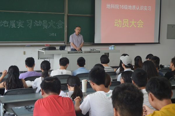 6月22日,地科院在明辨楼C203举行2016级地质认识实习动员大会。地科院副院长谭秀成,实习带队老师代表范存辉、杨西燕,辅导员于百江及2016级全体参与此次实习的学生参加此次动员大会。