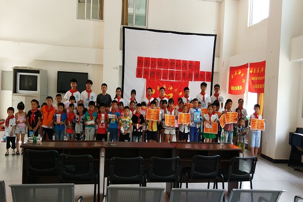 实践队于7月9日到达大桥镇,受到当地政府领导的热情接待。经过两天的休整和招生,知源爱心夏令营于11日上午正式开营。夏令营活动期间,队员们把上课的孩子们分成了低年级和高年级两个班,为孩子们开设了音乐、美术、舞蹈、手工、地理、英语、俄语等特色兴趣课程,除常规教学课程,实践队还为孩子们准备内容丰富的体育课,如篮球、足球、乒乓球等。
