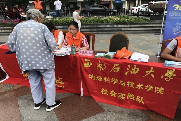 2017年8月24日,西南石油大学地科院“志远队”赴新都金东公益服务中心参加暑期公益实践。同日上午,由新都区残联主办的首届全国“残疾预防日”宣传教育活动在新都区黄桷树广场举行。活动过程中,我队志愿者们不断地向过往的居民群众发放《残疾预防知识手册》,耐心地为大家普及残疾预防知识和残疾人相关政策,解答居民提出的问题,并通过趣味问答游戏,帮助居民加深记忆,让残疾预防知识家喻户晓,让社会群众真正地关注到残疾人,走进残疾人的心里。