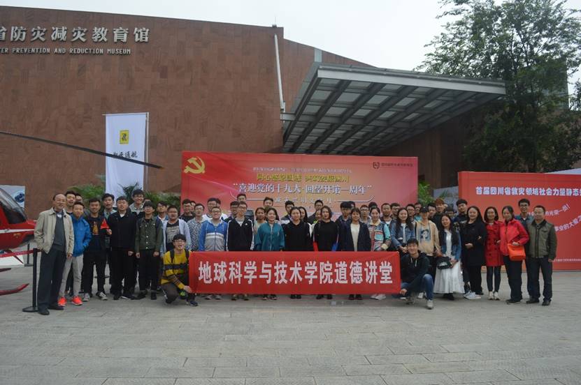 10月13日,恰逢四川省防灾减灾博物馆开馆一周年,在我院党委书记朱江、团委副书记兼15级辅导员文雪等带领下,资勘15级研究型班、勘查15级研究型班学生代表参观博物馆,开展道德讲堂活动,学习防灾减灾自救知识,提高安全防范意识。