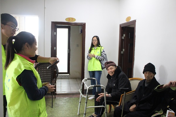 志愿者们走进老人房间,和他们交谈,听他们诉说往昔。老人们讲述自己的生平,将他们喜爱的事物。在和老人们交谈的过程中,志愿者们表演了自己精心准备的节目。一首《最美夕阳红》,让老人们有所共鸣;一段川剧过后,老人们纷纷鼓掌中,要求再来一遍。握着那双苍老的手,看着他们亲切和蔼的笑容,志愿者们更进一步的体会到志愿服务的意义所在。