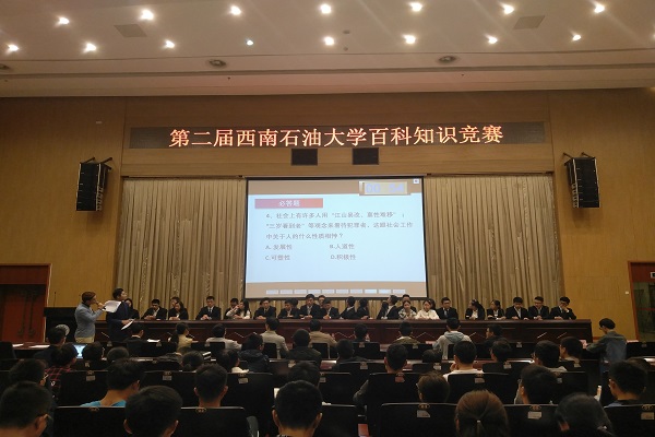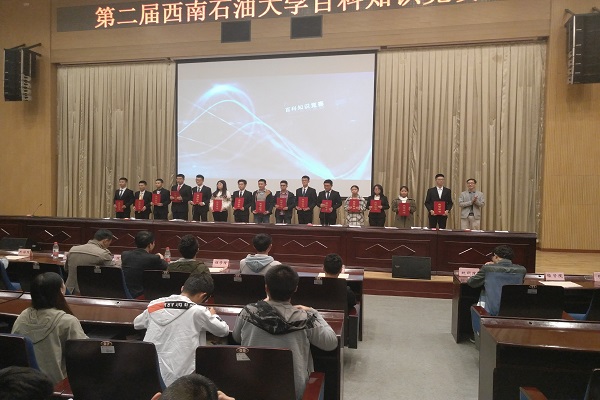 第二届百科知识竞赛决赛于2017年10月27日在图书馆报告厅成功举办,宣告了由西南石油大学各学院科技部等12个单位主办历经7天的百科知识竞赛圆满落幕。