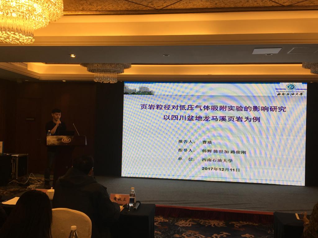 我院硕士研究生曹琰、李勇参加会议并作《页岩粒径对低压气体吸附实验的影响研究:以四川盆地龙马溪页岩为例》、《特低孔低渗致密储层油气运聚动力研究——以川中大安寨段致密油为例》的报告。报告引起了同行的广泛关注和热烈讨论。