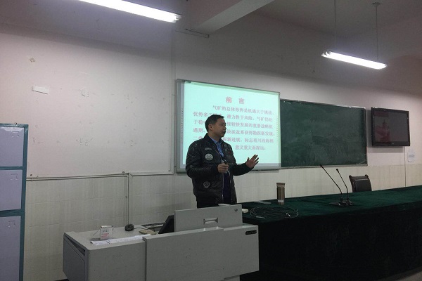 地质学2014级油气地质方向江油实习队于2018年1月3号顺利到达江油。同学们经过短暂的休整,就迅速投入到紧张有趣的生产实习中来。1月4日一早,同学们在带队教师赵峰、曾德铭老师的带领下,来到江油长城实验初中,参与西南气矿4位专家特地为大家开展的入矿教育。