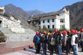 1月16日,城市地下空间工程专业2016级全体同学在黄璐、朱大鹏、李雪三位老师的带领下,来到了漩口中学地震遗址前,举行悼念活动,全体人员肃立默哀3分钟,沉痛哀悼四川汶川大地震遇难者,缅怀在抗震救灾及灾后重建中英勇牺牲的人民解放军、武警官兵、人民警察等。