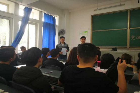 陈笛等四名中共党员,分别从思想、学习、生活等方面推荐入党人选,最后讨论选出四位入党候选人,四人纷纷表示,会时刻以一名党员的标准严格要求自己,在今后的学习、生活中更好地发挥党员的先锋模范作用,并向党组织提出入党申请。有表决权的正式党员以及2016级的7位预备党员举手表决,审议、通过了发展卢轶伦等三名同志为中国共产党预备党员。