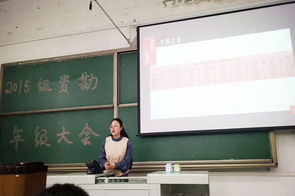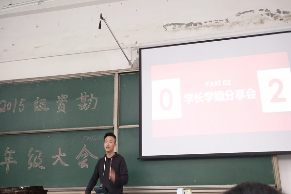 大会由年级委员会主席王浩南主持,辅导员文雪出席,大会还邀请到资源勘查工程2014级的石静、张轩等4位优秀的学子分享自己的学习、考研和求职等经历。