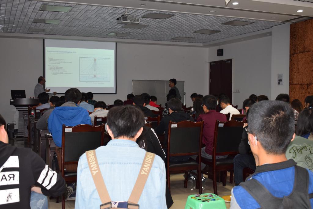 讲座结束后,与会师生就目前工业界一些最新的改进采集效率同度的新方法和新思想,例如近地表多次波压制与目的层最强照明的成像方法等与 Mazin博士进行了深入的交流探讨。(图/李彦锋、文/吴 颖)