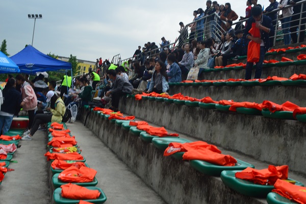 除去运动员们的努力以及优异成绩外,场外的拉拉队也气势高昂,给了运动员们很大的鼓舞。4*100运动员在比赛结束后也向拉拉队鞠躬以示感谢。且拉拉队在离场时也自主将拉拉队服装摆放整齐,向大家展现我院学生的高素质和优秀素养。(图\周 馨 唐起先 潘颉 文\周 馨 唐起先)