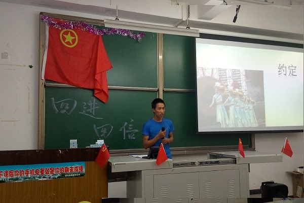 最后辅导员李明科老师讲话。他勉励同学们努力学习,在以后争取考研,希望同学们学好英语,还告知了同学们参加创新创业之类的竞赛的重要作用,和对今后人生的激励性和促进作用。最后,他表示,希望同学们学习好四进四信,争做时代好青年。(图/李杨凡 文/李杨凡 韩弘驰)