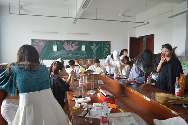 比赛当天下午,所有参演人员在明辨楼E605进行化妆、更衣、道路调整等准备工作,负责此次比赛的同学认真核对每一项准备工作是否到位,不懈怠每一个表演细节。比赛开始后,地科院是第十顺位出场,主持人的话音落下,《蜀韵传千年 西柚甲子情》——地科院原创作品正式上演。